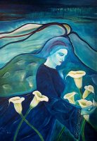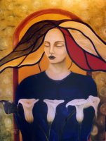 “Mujeres de colores en un planeta sin fronteras, sin guerras. Utópica visión reflejada en seres oníricos de meditación disfrazada. Imágenes que gritan tolerancia a través de la entrega y el silencio, reflejando el lado femenino de la humanidad. La espiritualidad es la que mueve el todo, la esperanza para el siglo que empezamos”