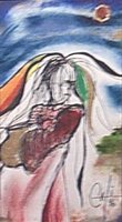 Aparece mi personaje un tanto olvidado desde la infancia, la mujer de los cabellos de colores. De un total de alrededor de 38 obras en técnica mixta plumilla óleo y lamina de oro , enmarcadas con un recargado marco, adrede; solo quedo un boceto que recogí de la basura de mi estudio y que ahora desempolvo. Los otros están alrededor del mundo