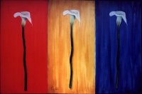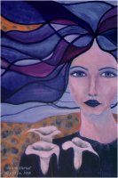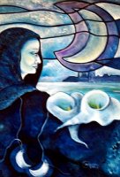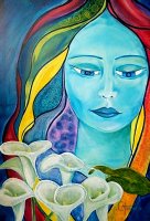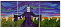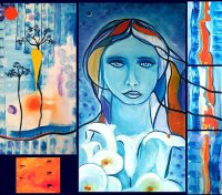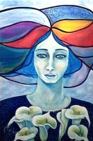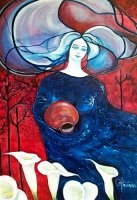 “Mujeres de colores en un planeta sin fronteras, sin guerras. Utópica visión reflejada en seres oníricos de meditación disfrazada. Imágenes que gritan tolerancia a través de la entrega y el silencio, reflejando el lado femenino de la humanidad. La espiritualidad es la que mueve el todo, la esperanza para el siglo que empezamos”